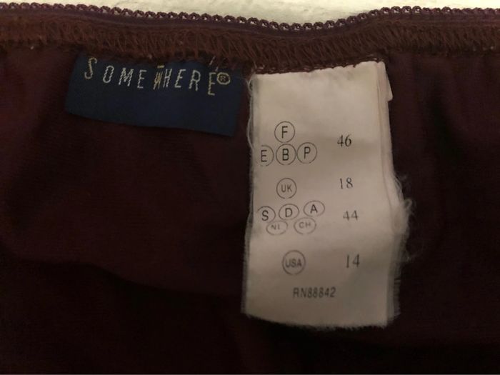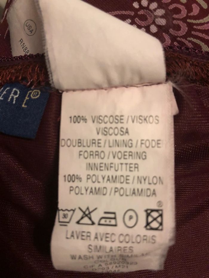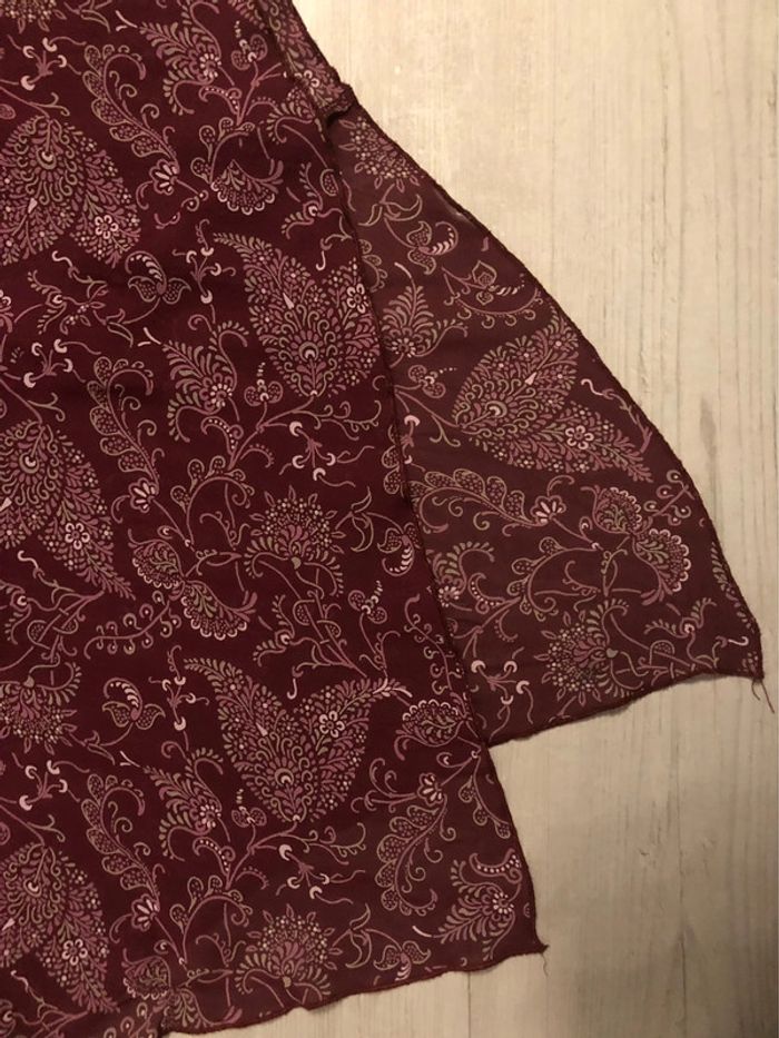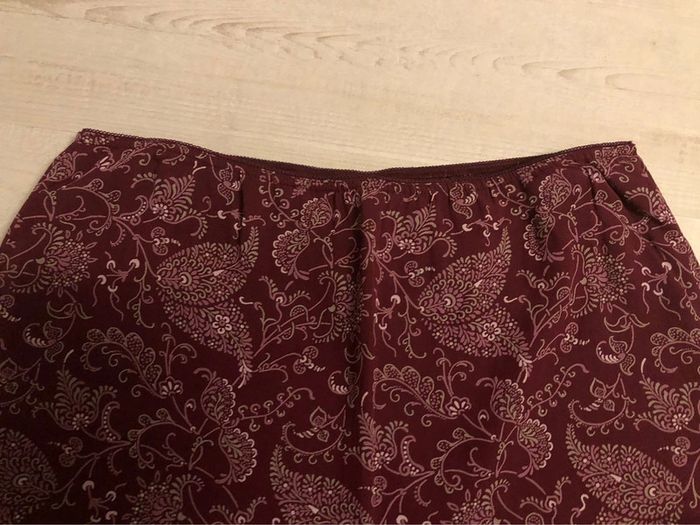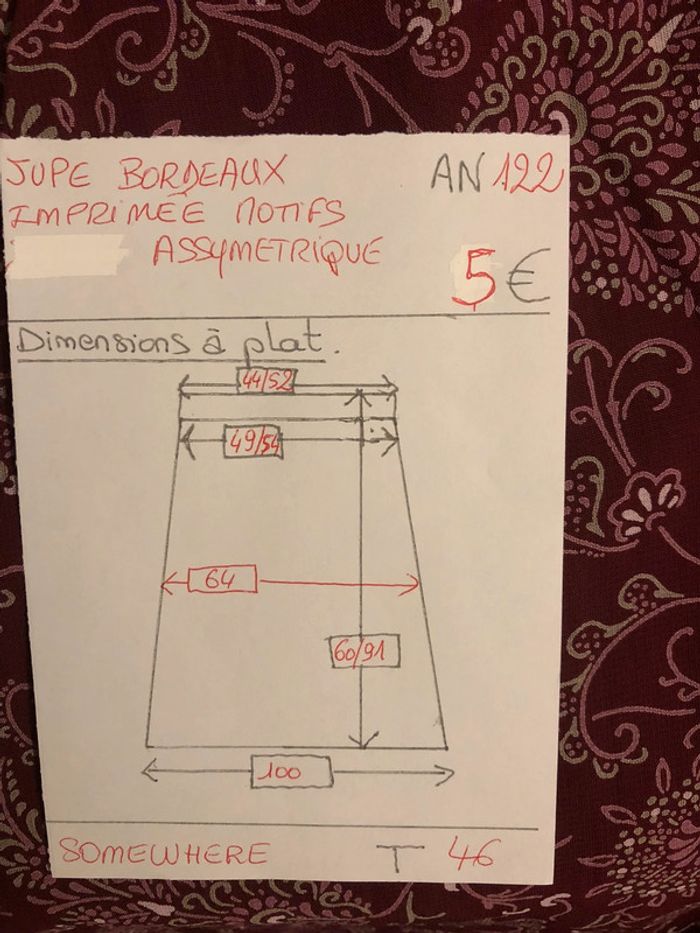 Bonjour #videdressing85vêtfemme3XL46 #videdressing85vêtfemme3XL4XL4648 #videddressing85vêtfemme4XL48 Très bon état T 46 mais taille élastique et taille grand (46-48) Dimensions sur la dernière photo Jupe bordeaux imprimée Taille élastique Entièrement doublé jusqu’au genoux Forme asymétrique plus longue d’un côté, cheville et sous le genou Cdlt