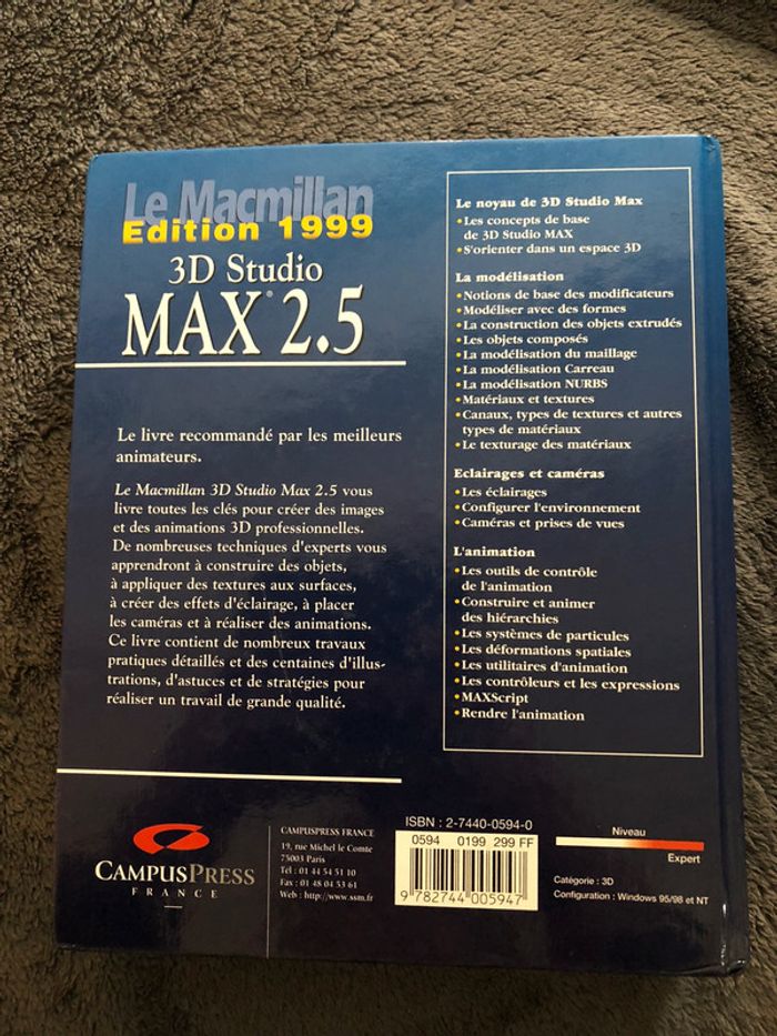 bonjour #videdressing85livreados #videdressing85livreadultes #videdressing85livreinformatique NEUF le macmillan 3D studio Max 2.5 livre de 1146 pages création d’images et d’animations 3D professionnelle etc... de: Steven Elliott, Philipp Miller, Al éditions : campus presse cdlt