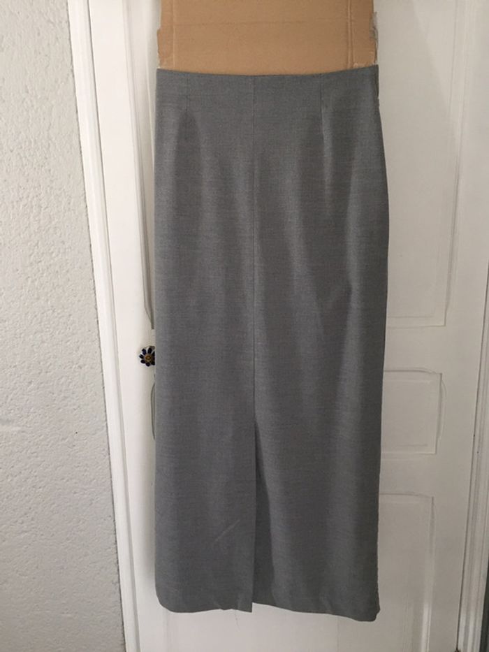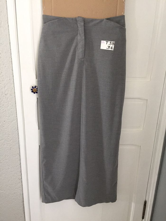 #videdressing85vêtfemmeM38 #videdressing85vintage bonjour jupe longue grise T38 mais taille petit elle fait 37 cm de tour de taille portée 2/3 fois, comme neuve zip devant et poches ouverture en bas derrière marque: cache cache cdlt