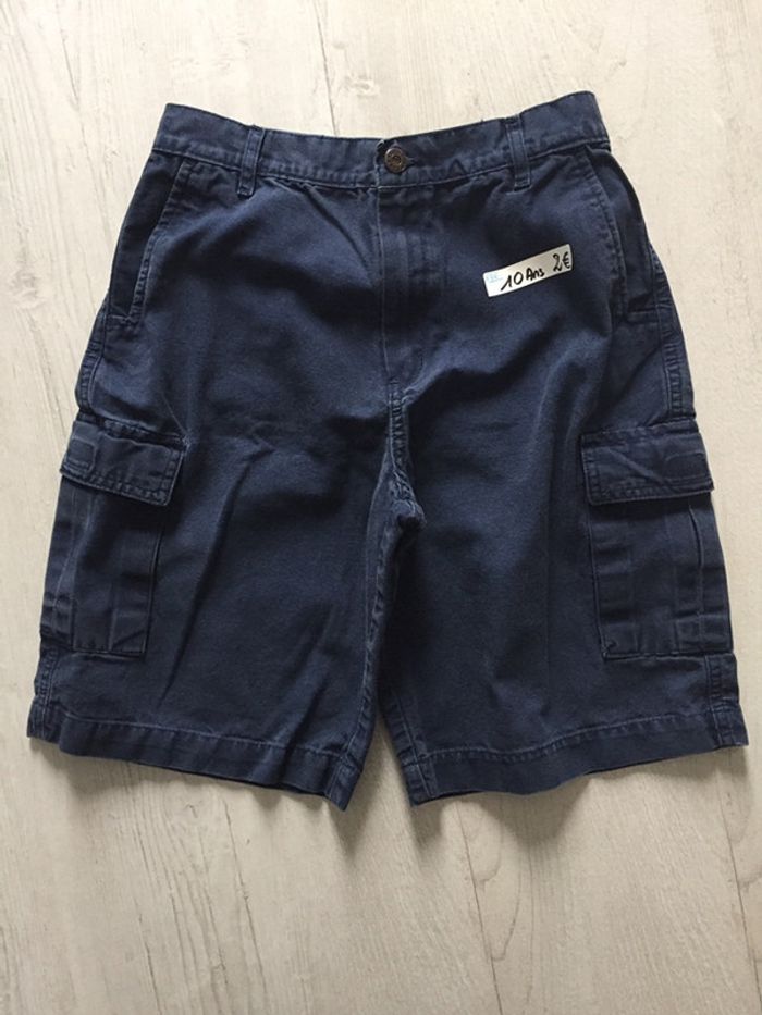 #videdressing85vêtenfant10A bonjour 10 ANS short bleu marine délavé toile jean 5 poches dont 2 côté passants ceinture cdlt