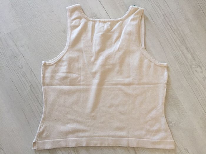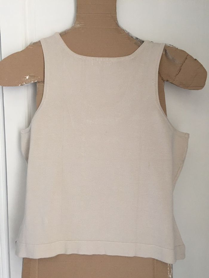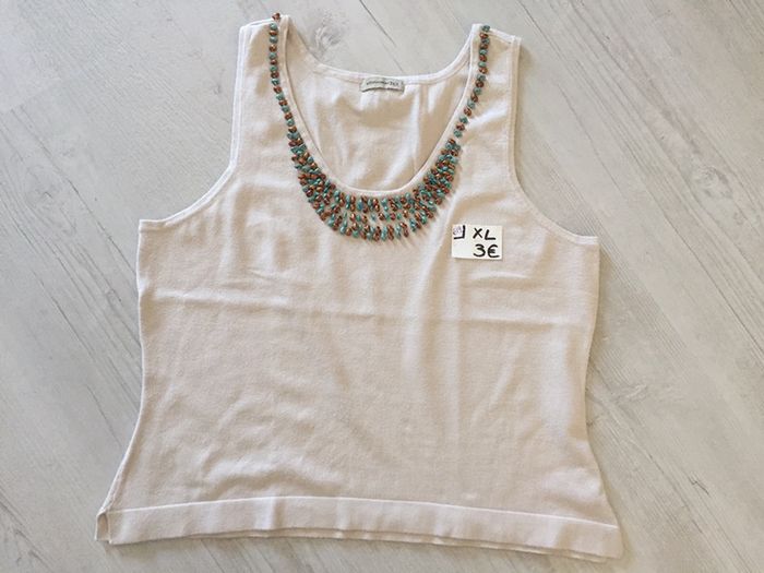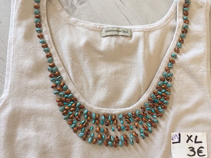 #videdressing85vêtfemmeXL42 #videdressing85vintage bonjour pull fin beige style débardeur T 42-XL grand décolleté garni de perles marron et turquoise très peu porté, très bon état cdlt