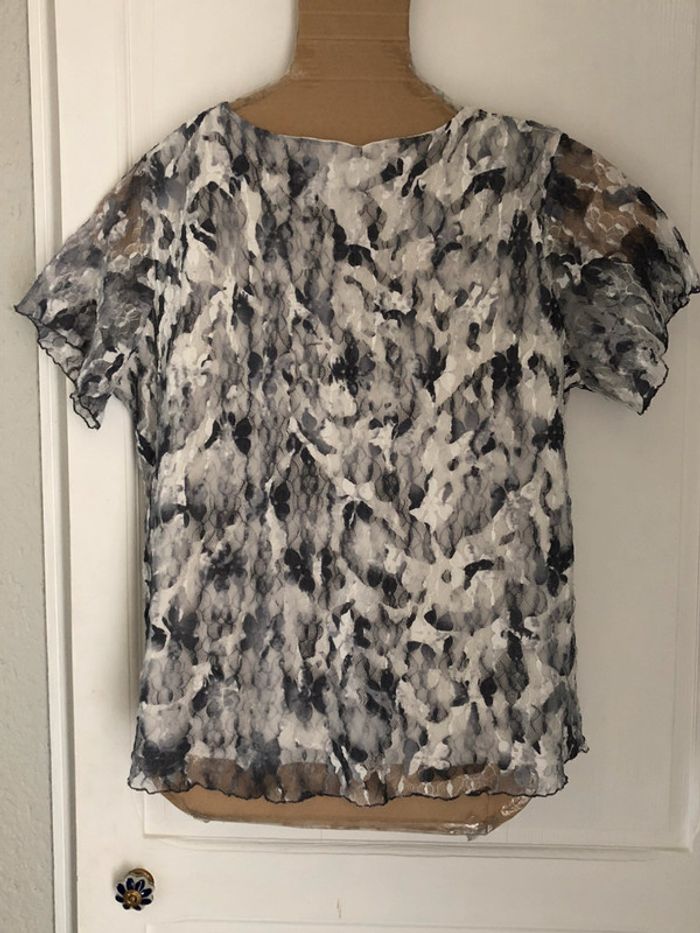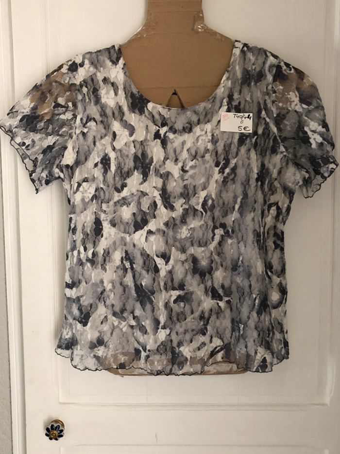 931- blouse voile gris/blanc doublée T L - photo numéro 1