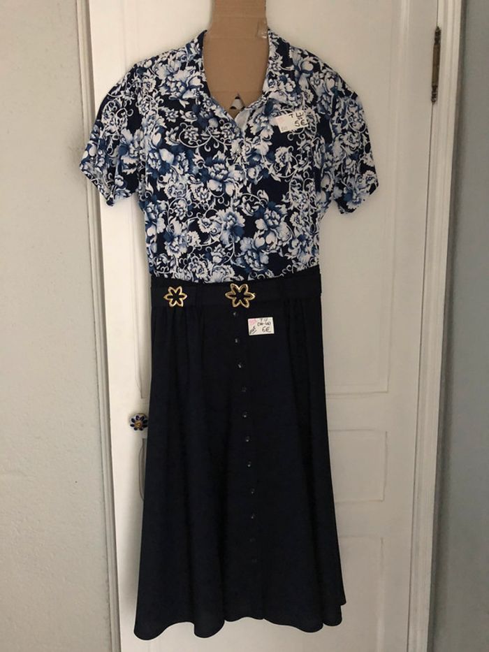 #videdressing85vêtfemmeUNIQUE #videdressing85vêtfemmeM38 #videdressing85vêtfemmeL40 #videdressing85vêtfemmeXL42 #videdressing85vêtfemmeXXL44 #videdressing85vêtfemme3XL46 #videdressing85rienqueduneuf bonjour neuve jupe bleue marine longue et très large T U ( taille: de 38cm à 48cm, sans serrer) pour taille 38/48 boutons fantaisies et décoratifs devant zip au dos taille élastique ceinture fantaisie avec fleurs métalliques boutique de créateurs ....(haut vendu) cdlt