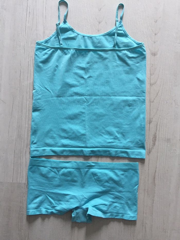 bonjour #videdressing85sousvêtementslingerie TRÈS BON ÉTAT débardeur et shorty assortis turquoise très extensible en élastane T Unique du 38 au 42 - M/XL cdlt