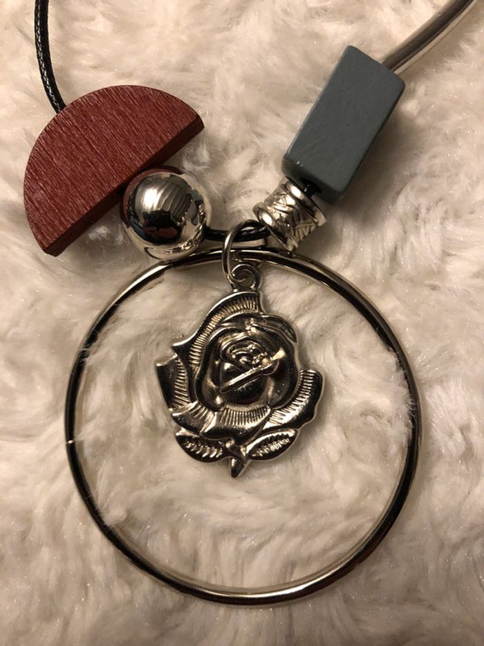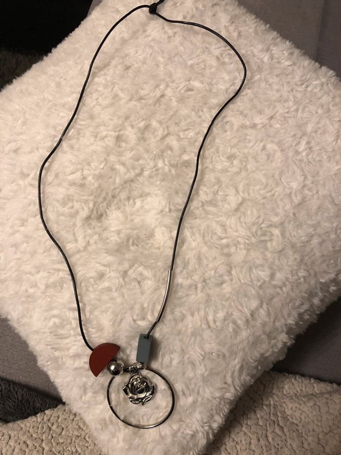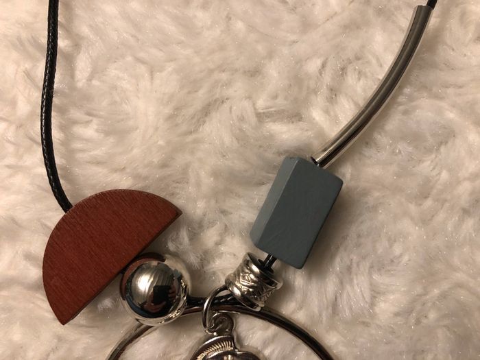 #videdressing85bijouxxx #videdressing85rienqueduneuf #vintedgift bonjour NEUF et jamais porté sautoir argenté sur lacet perles en bois anneaux et breloque argenté Cdt