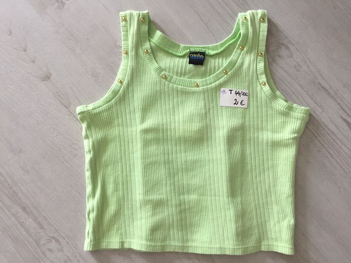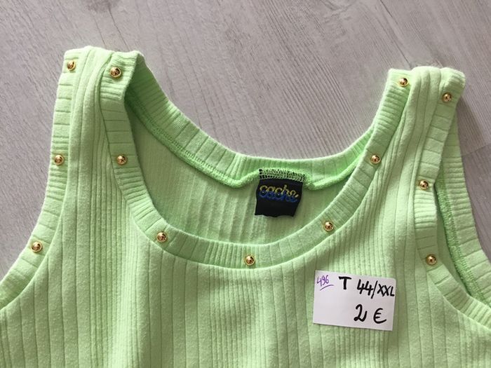 #videdressing85vêtfemmeXXL44 #videdressing85vintage bonjour débardeur vert pomme T 44 - XXL petits clous dorés au cou marque: cache-cache cdlt