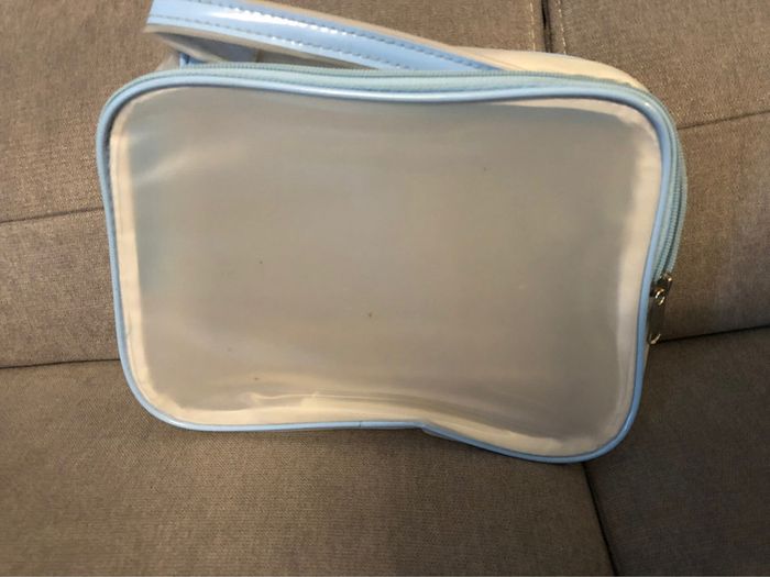 bonjour #videdressing85cosmétiques #videdressing85sacs #videdressing85rienqueduneuf #vintedgift NEUVE pochette, trousse de maquillage, trousse de toilette blanche opaque et bleu ciel pochette en pvc fermeture par zip une anse cdlt