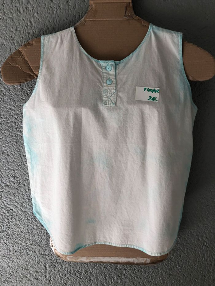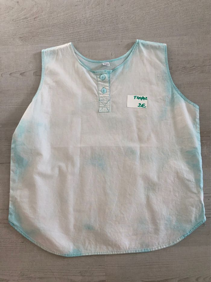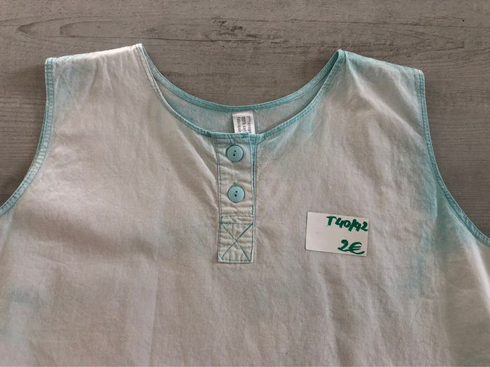 bonjour #videdressing85vêtfemmeL40 #videdressing85vêtfemmeLXL4042 #videdressing85vêtfemmeXL42 très bon état, porté 2/3 fois T 40/42 haut vintage des années 80 vert clair blanchit style javel sans manches boutons devant cdlt