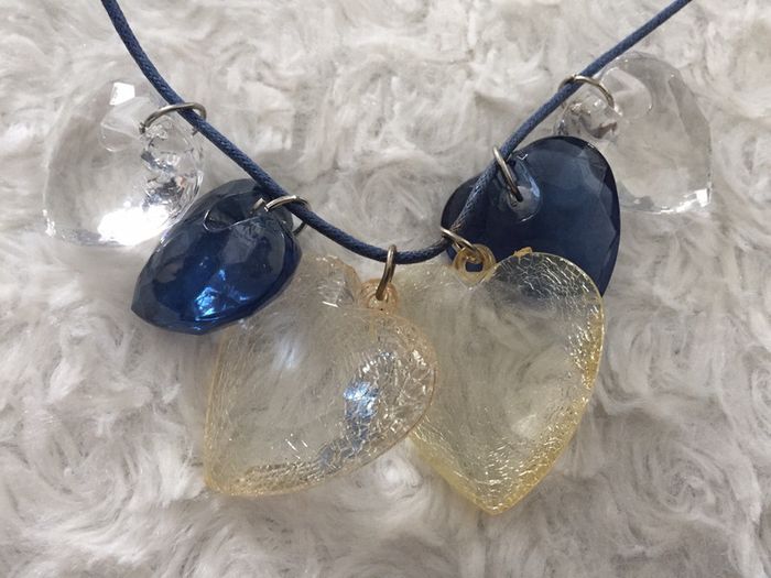 Bonjour, #videdressing85bijouxxx #videdressing85vintage #videdressing85rienqueduneuf #vintedgift NEUF collier sur lacet bleu neuf -2 cœurs blancs -2 cœurs bleus -2 cœur beiges cdlt