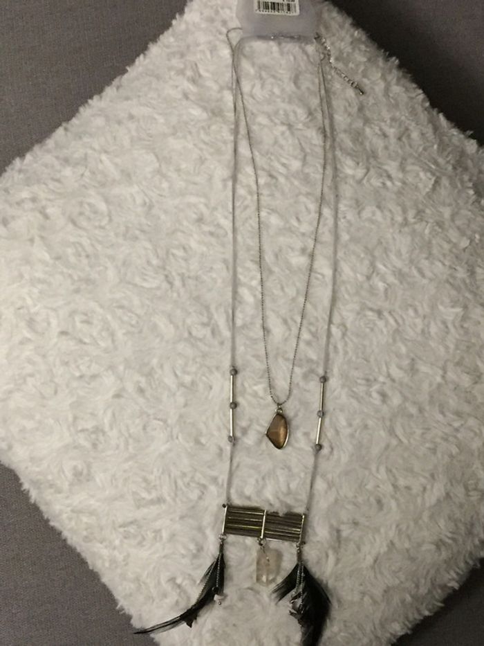 758-Collier fantaisie plumes NEUF - photo numéro 1
