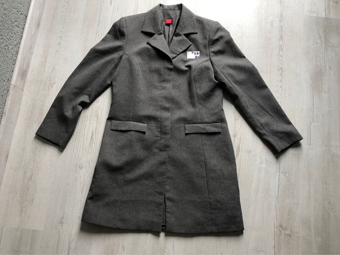 1116-veste de tailleur longue grise T 42 (40) portée 1 fois - photo numéro 1