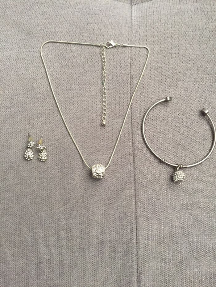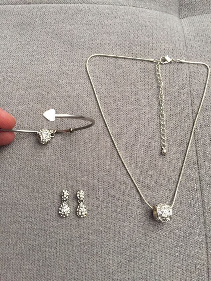 #videdressing85bijouxxx #videdressing85rienqueduneuf #vintedgift bonjour NEUVE parure de bijoux en métal argenté et strass comprenant: -chaîne avec pendentif -bracelet avec pendentif -boucles d’oreilles avec pendentif cdlt