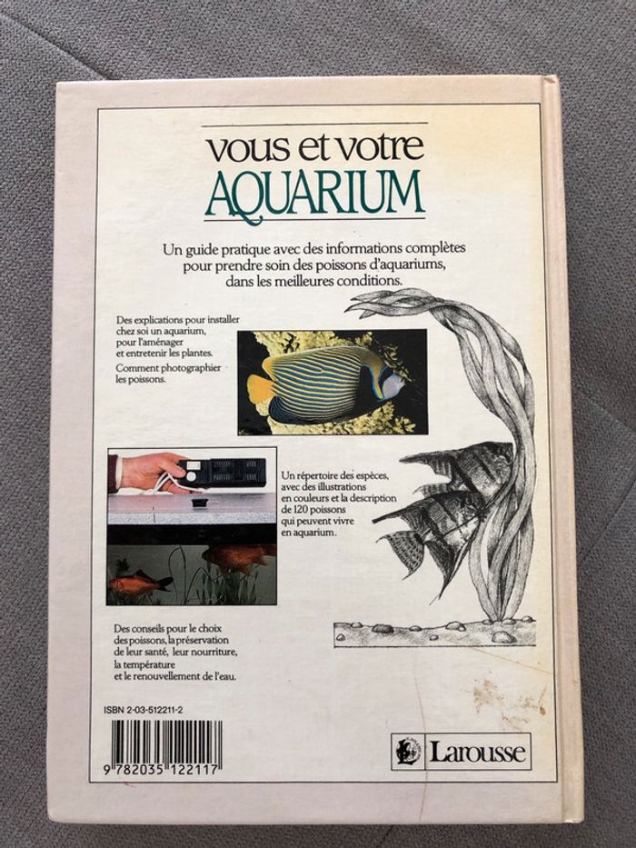 #videdressing85livreanimaux #videdressing85rienqueduneuf bonjour NEUF vous et votre aquarium « comment entretenir votre aquarium » édition Larousse guide pratique avec informations complètes pour prendre soin des poissons dans les meilleures conditions -installation, aménagement, entretien -comment photographier les poissons -répertoire des espèces avec illustrations en couleur et description de 120 espèces d’aquarium -choix des poissons, santé, nourriture, température, renouvèlement de l’eau cdlt