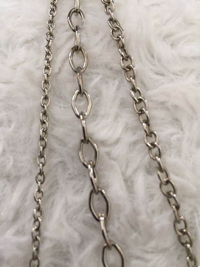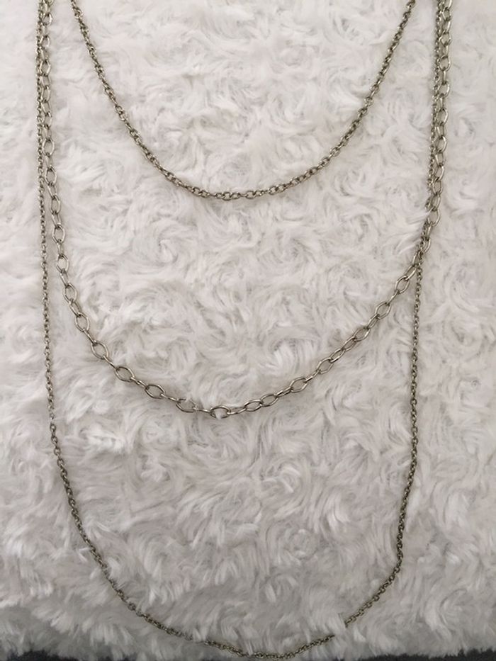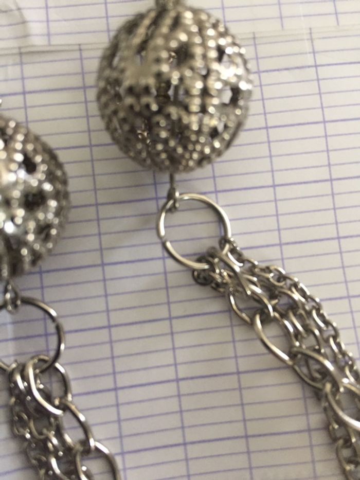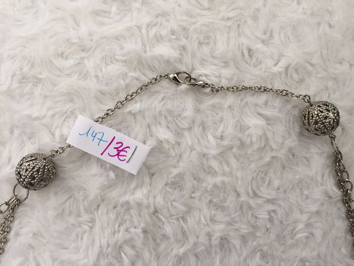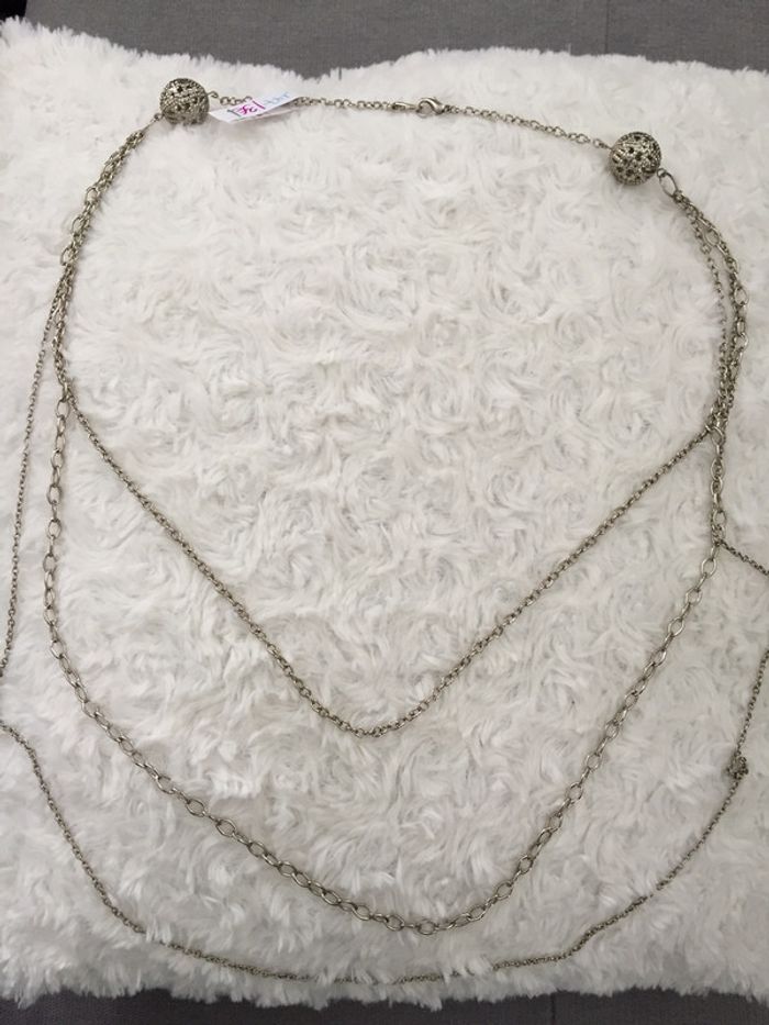 #videdressing85bijouxxx #videdressing85vintage #videdressing85rienqueduneuf #vintedgift bonjour sautoir argenté avec 3 rangées de chaînette différentes 2 boules argentées fermoir argenté cdlt
