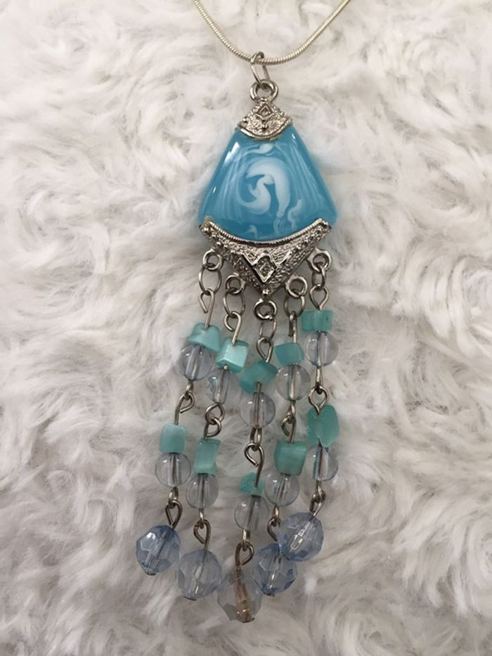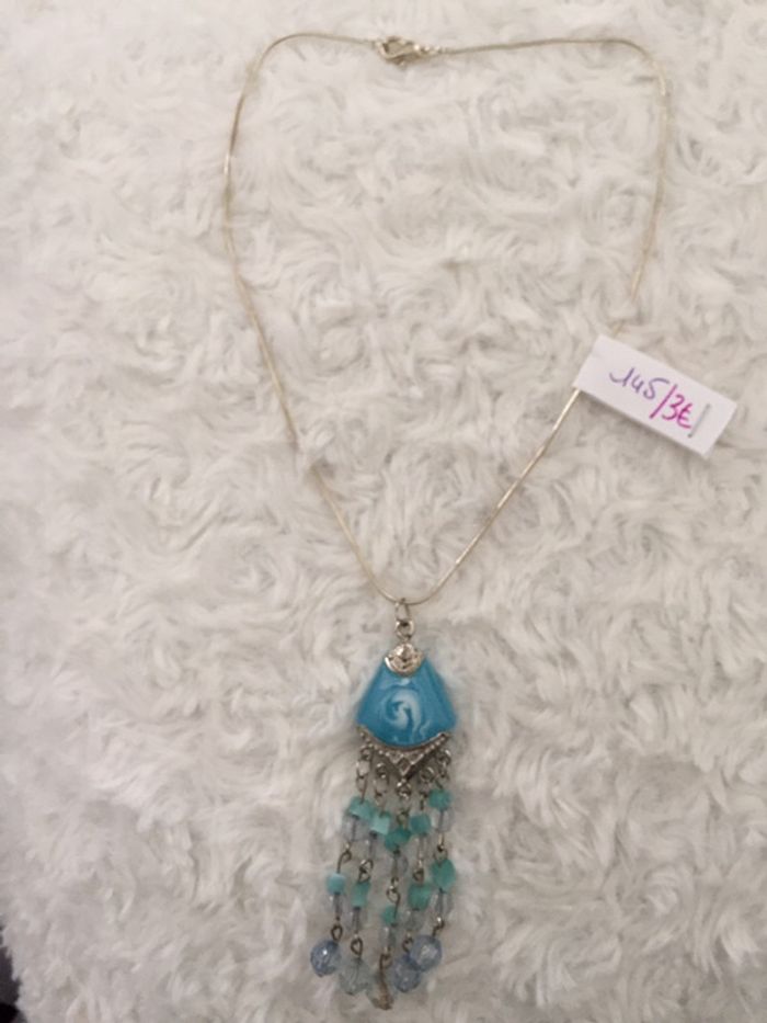 #videdressing85bijouxxx #videdressing85vintage #vintedgift bonjour chaîne argentée breloque turquoise chaînette et perles porté 1 fois cdlt