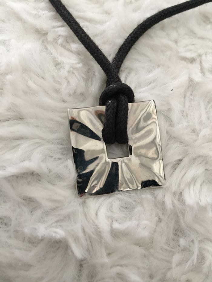 bonjour #videdressing85bijouxxx #videdressing85vintage #videdressing85rienqueduneuf #vintedgift NEUF collier lacet noir pendentif carré ondulé argenté cdlt