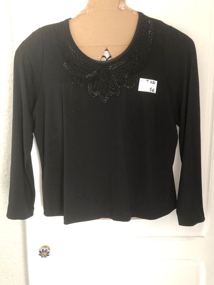 968-blouse noire perles T42 - photo numéro 1