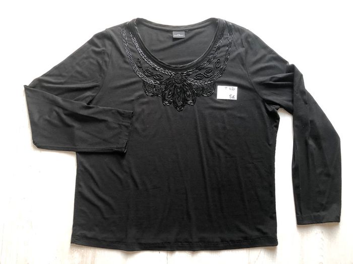 #videdressing85vêtfemmeXL42 bonjour portée 2 fois blouse noire T 42. XL forme ample perles à l’encolure manches longues cdlt