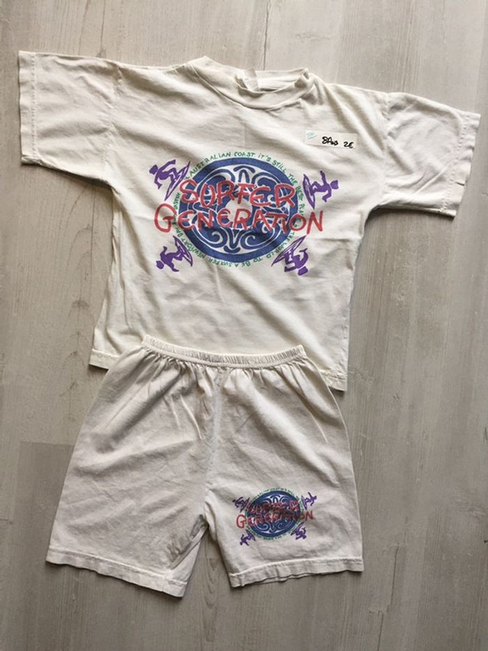 #videdressing85vêtenfant8A bonjour 8 ANS pijacourt beige motif surf sur le devant du tee-shirt et le devant du caleçon en coton très bon état cdlt