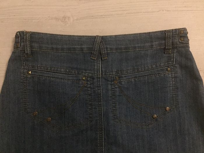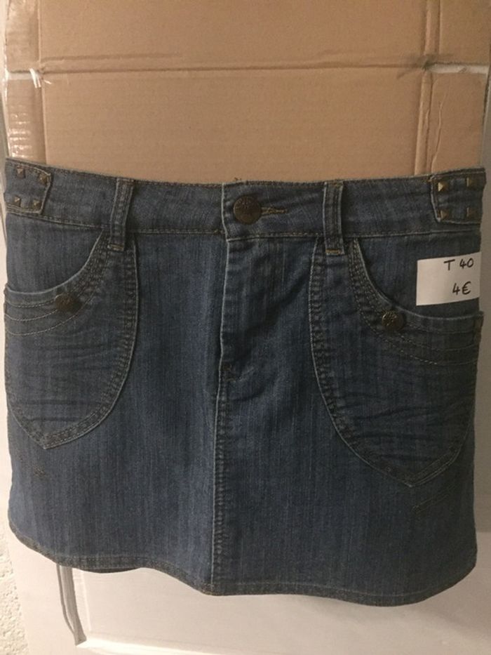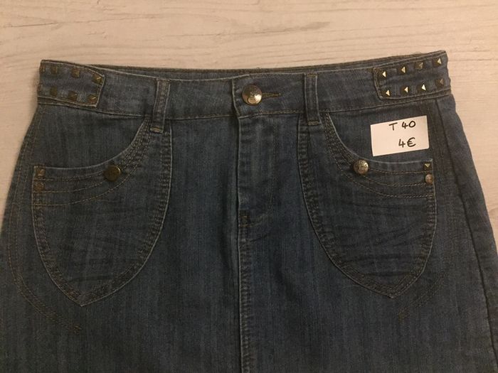 #videdressing85vêtfemmeL40 bonjour peu portée jupe en jean T 40. L très bon état comme neuve nombreux clous et fantaisies cdlt