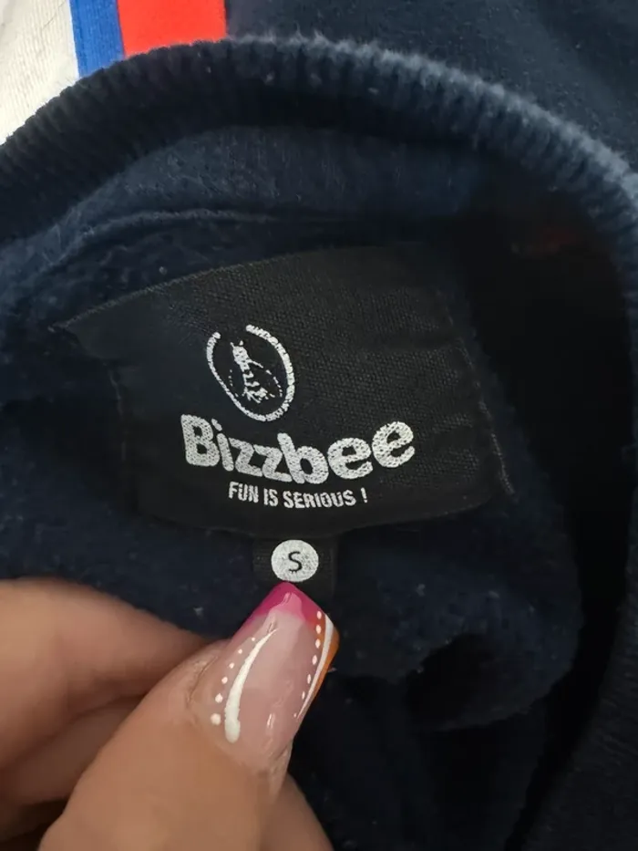 Pull bizzbee, bleu marine rouge et blanc, taille S en très bon état