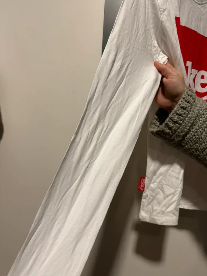 Tee shirt manche longues coca cola avec écrit coke, très bon état, taille XS, blanc et rouge
