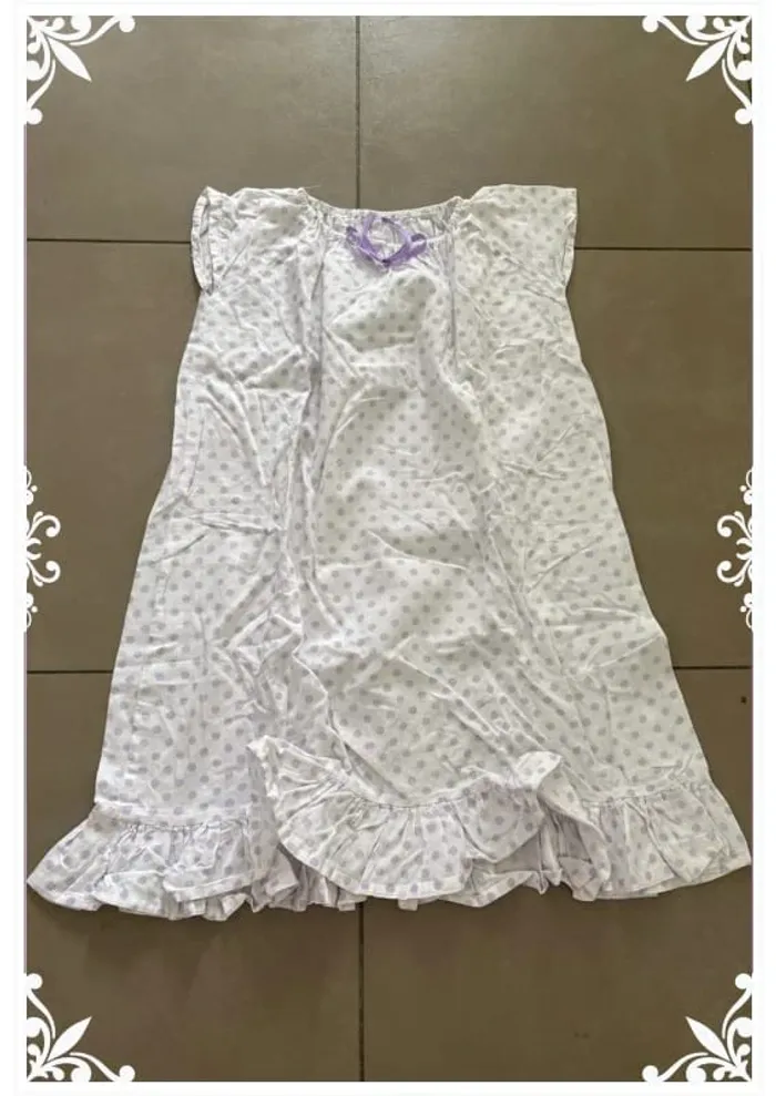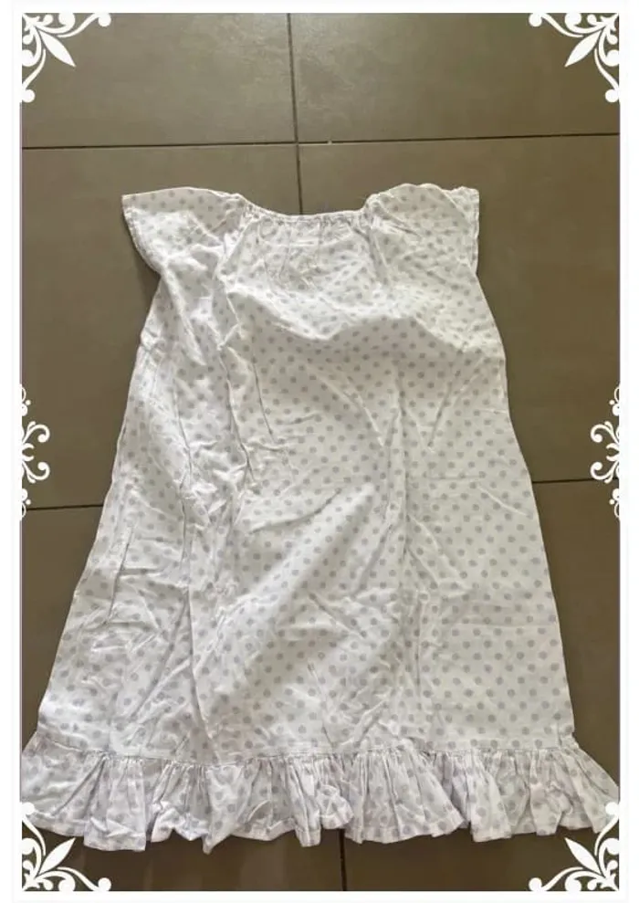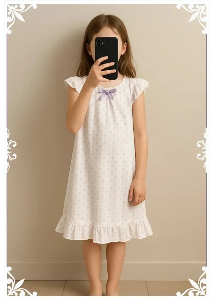 #lesliemp_fille #lesliemp_10ans Craquez pour cette jolie chemise de nuit légère et toute douce, parfaite pour faire de beaux rêves ! 💜 Imprimé à pois lavande sur fond blanc, petit nœud décoratif à l'encolure et volants féminins en bas pour un look tout en tendresse. 💤 Tissu fluide, agréable à porter, idéale pour les nuits d'été ou les câlins du matin. 📏 Taille 10 ans – en très bon état. Sans marque mais 100 % confort et style ✨
