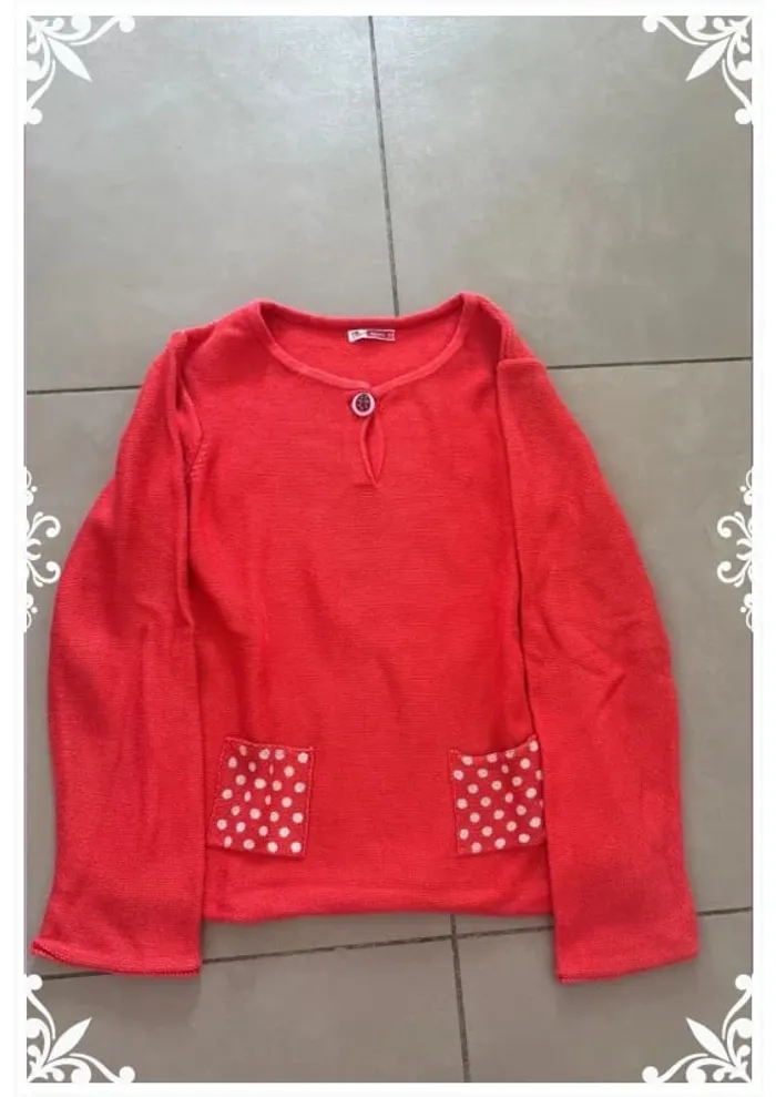 Adorable pull rouge en maille légère signé Du Pareil Au Même, parfait pour la mi-saison ! On craque pour ses deux petites poches à pois qui apportent une touche ludique et originale 🥰 ✔ Taille 10 ans ✔ En très bon état, peu porté ✔ Facile à enfiler grâce à son joli bouton à l'encolure ✔ Idéal pour l'école ou les sorties 🧺 Lavé, prêt à être porté ! 📦 Envoi rapide et soigné #lesliemp_fille #lesliemp_10ans