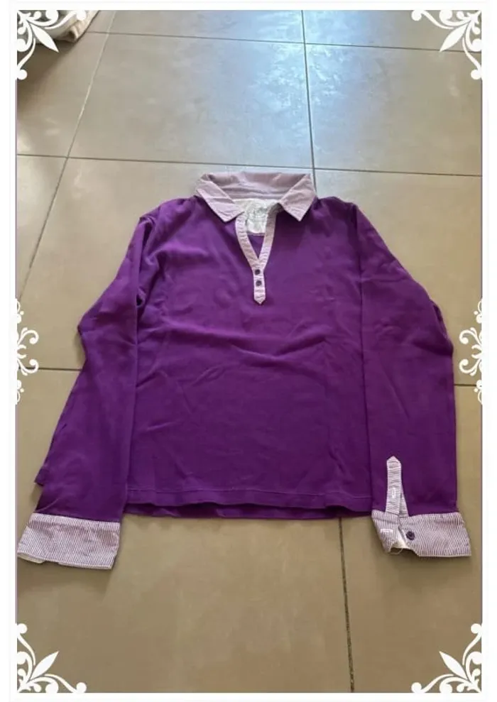 #lesliemp_femme Chemise à manches longues de la marque Burton, de couleur violette, avec col et poignets contrastés en tissu rayé blanc et violet. Fermeture partielle à l’avant par une patte de boutonnage assortie. Coupe droite, style décontracté mais soigné. 🟣 Détails : Taille : M Couleur : Violet avec détails rayés Manches longues Marque : Burton État : Très bon état général 📸 Possibilité d'envoi de photos supplémentaires sur demande.