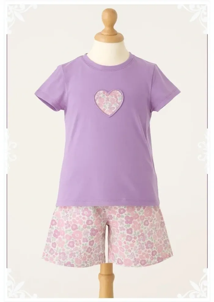 💜 Pyjama été fille – Taille 12 ans – Haut brodé Kiabi & short fait main - photo numéro 1