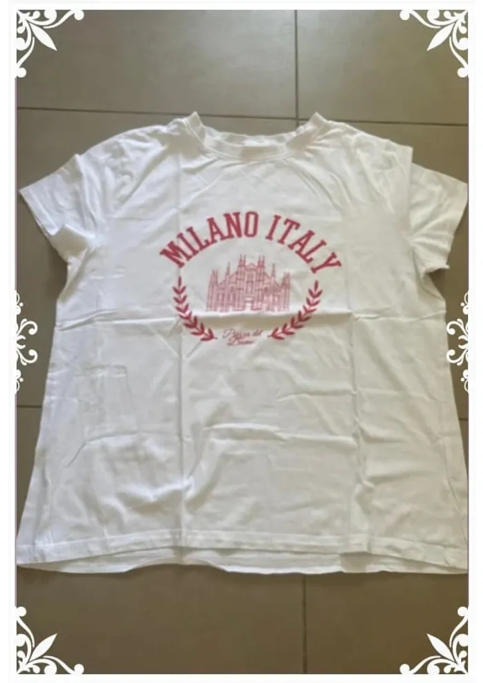 #lesliemp_femme 🇮🇹 Ciao bella ! Ce t-shirt blanc Primark taille L te transporte direct à Milano sans avoir à booker un vol ! 💖 Motif "MILANO ITALY" en rose avec sa petite cathédrale qui fait la dolce vita sur ton torse. 💡 Confortable, stylé, parfait pour siroter un spritz ou juste faire genre t’es une jet-setteuse italienne dans ton Intermarché. 💃 Taille L – coupe loose chill 📦 En très bon état, repassé par le vent du sud (ou presque) 🎁 À shopper maintenant si tu veux ajouter un petit “ciao” en coton à ta garde-robe !