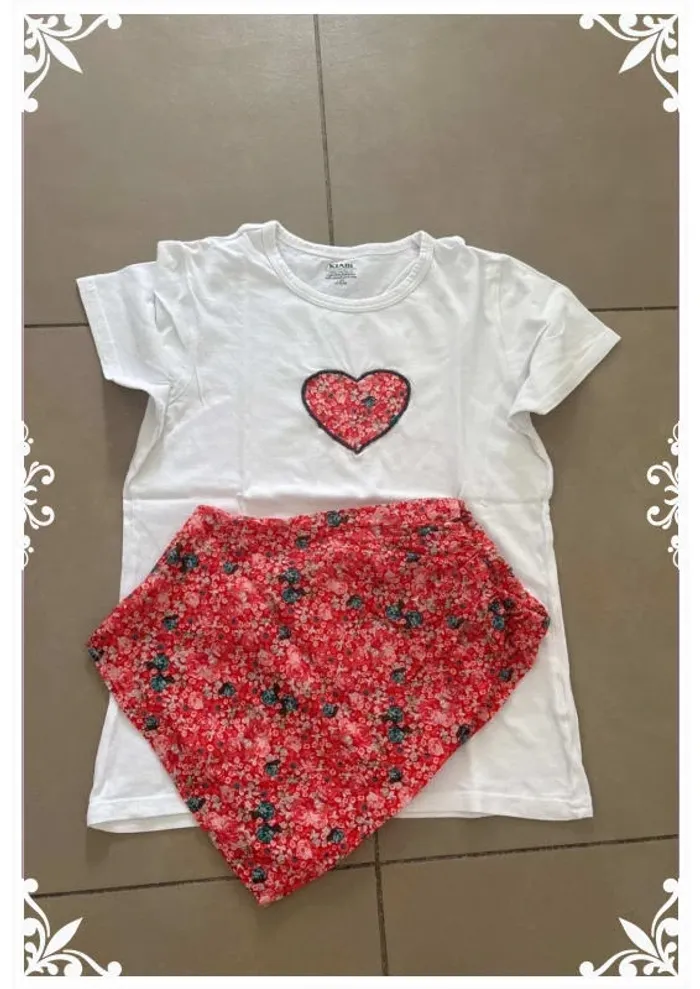 #lesliemp_fille Un pyjama estival unique et confortable ! 👕 Haut blanc Kiabi avec joli cœur brodé main en tissu liberty rouge fleuri 🩳 Short assorti cousu main, taille élastiquée, coton rouge imprimé de petites fleurs vertes et blanches 📏 Taille : 12 ans 🌿 Léger, respirant et agréable pour les nuits d’été 🧵 Modèle artisanal unique 💯 Excellent état – lavé avec soin, prêt à porter 📦 Envoi rapide et soigné – possibilité de lot avec d’autres modèles #PyjamaFille #Kiabi #Taille12Ans #FaitMain #Liberty #RougeFleuri #VintedKids #BroderieCœur #Coton #leslie_12ans