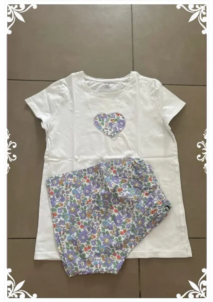 #lesliemp_fille Pyjama 2 pièces confortable et estival, parfait pour les nuits douces ! 👕 Haut blanc Kiabi décoré d’un cœur fleuri cousu main dans un tissu liberty. 🩳 Short assorti cousu main, taille élastiquée, en coton léger imprimé fleuri (violet, rose, vert et touches de jaune). 📏 Taille : 12 ans 🧵 Pièce artisanale, modèle unique 💯 Excellent état – lavé avec soin, prêt à porter 📦 Envoi rapide et soigné – possibilité de lot avec d’autres modèles #PyjamaFille #Kiabi #Taille12Ans #FaitMain #CoutureMaison #Liberty #BroderieCœur #VintedKids #PyjamaÉté #leslie_12ans