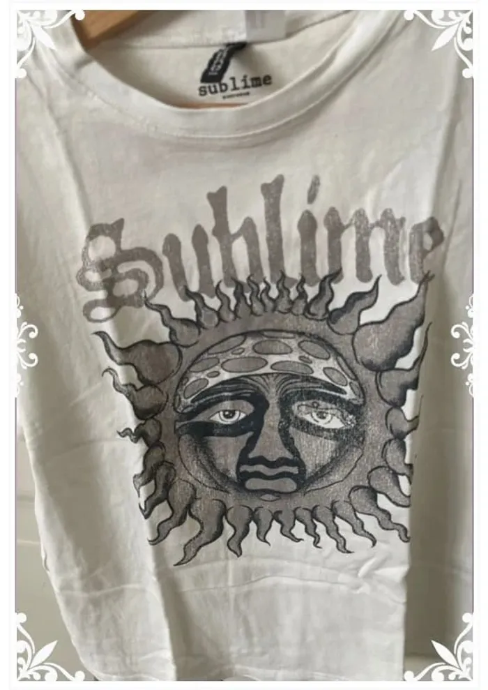 #lesliemp_femme T-shirt blanc à manches courtes de la collection DIVIDED chez H&M. Coupe droite, impression "Sublime" avec un motif de soleil vintage à l’avant. Taille XS En très bon état, porté quelques fois seulement. Très doux et confortable, parfait pour un look décontracté et stylé ! 📏 Taille : XS 📌 Marque : H&M DIVIDED 🎨 Couleur : Blanc avec motif imprimé 📦 État : très Bon état N'hésite pas à me contacter si tu veux plus de photos ou d'infos ! 🌞