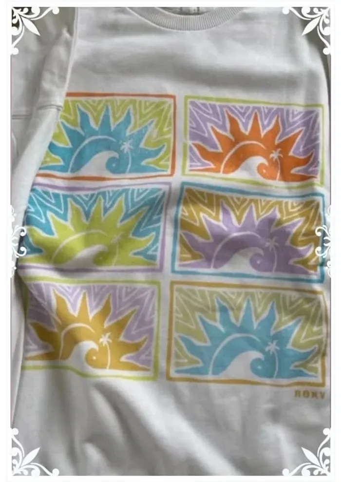 💥 Ultra stylé et confortable, ce sweat blanc à manches longues arbore un design graphique coloré et ensoleillé façon pop art, avec 6 illustrations de vagues stylisées dans des tons pastel (bleu, violet, orange, vert, jaune). 🧵 Marque : ROXY, gage de qualité et de style surfwear féminin. 📏 Taille : S – coupe légèrement oversize, parfaite pour un look décontracté. 🎨 Motif multicolore lumineux qui donne de l'énergie à n’importe quelle tenue. 💯 En très bon état, porté avec soin. Petite tache derrière le bras. 🌿 100 % coton doux, agréable à porter toute l’année. ✨ Idéal pour un look chill, vacances ou cocooning 🌊 📸 N’hésite pas à me demander des photos supplémentaires ou des infos ! 💌 Envoi rapide et soigné. 💶 Prix doux, fais-toi plaisir 🌞 #Roxy #SweatRoxy #LookSurf #TailleS #PastelVibes #StyleDécontracté #VintedFinds #VintedFrance #ModeFemme #PopArt #CotonDoux