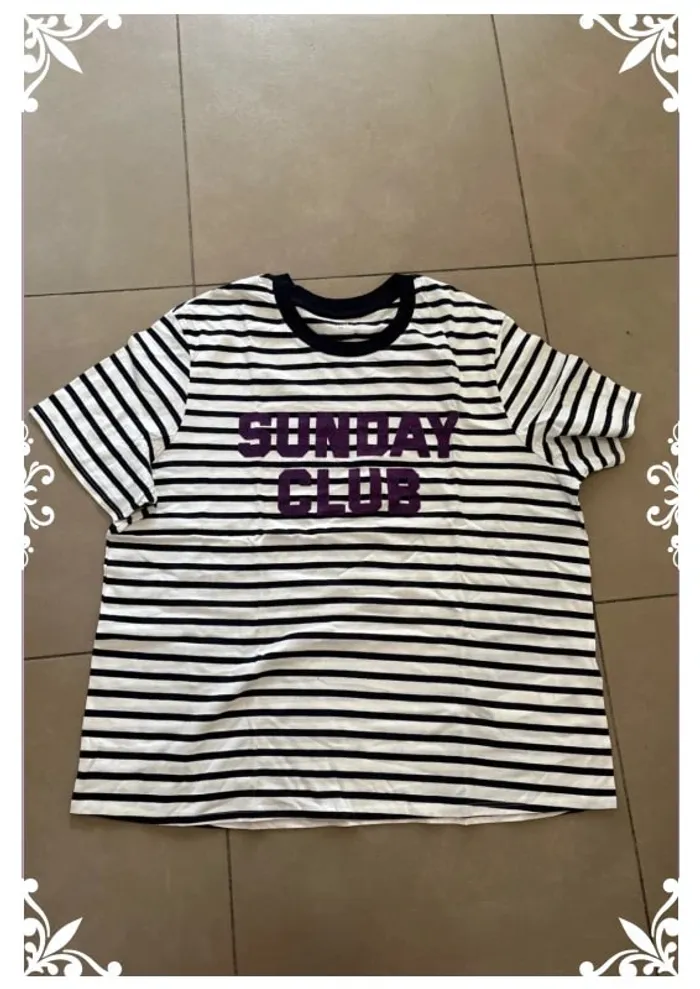 #lesliemp_femme 🖤 T-shirt blanc à rayures noires avec col contrasté et inscription "SUNDAY CLUB" en violet foncé. 🧵 Matière agréable à porter, coupe légèrement ample, parfait pour un look décontracté du week-end. 📦 Très bon état, peu porté. 📸 Porté une fois pour la photo. 💌 Envoi rapide & soigné. N'hésitez pas si vous avez des questions ! #tshirt #rayures #sundayclub #weekendlook #vinted #lesliemp