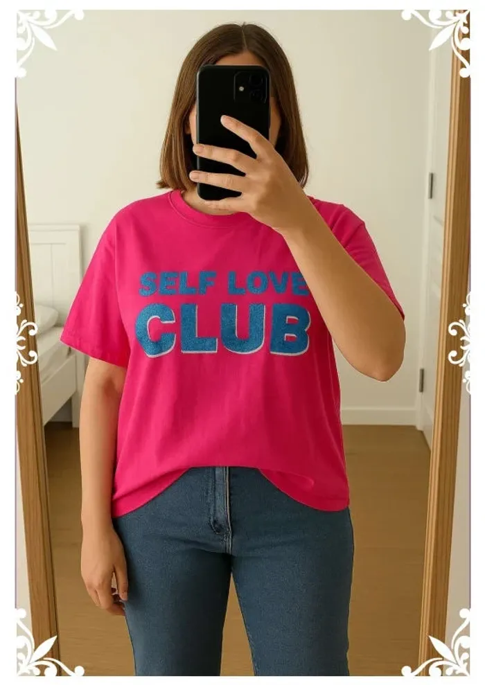 T-shirt "Self Love Club" fuchsia – Taille L - photo numéro 1