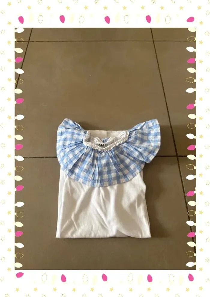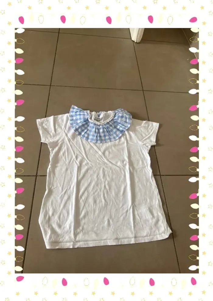 On adore ce look frais et rétro ! Ce t-shirt blanc basique devient une vraie pépite grâce à son col volanté vichy bleu, cousu main avec soin par une couturière 🧵✨ 🔹 Taille : 12 ans 🔹 État : Excellent, très peu porté 🔹 Col vichy bleu clair – effet craquant garanti ! 🔹 Coupe droite et confortable Idéal pour la rentrée, une sortie estivale ou un petit look champêtre chic 🌾💫 📦 Envoi rapide et soigné – Possibilité de lots pour plus d'économies ! #lesliemp_fille #lesliemp_12ans