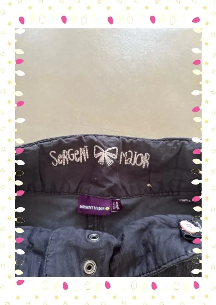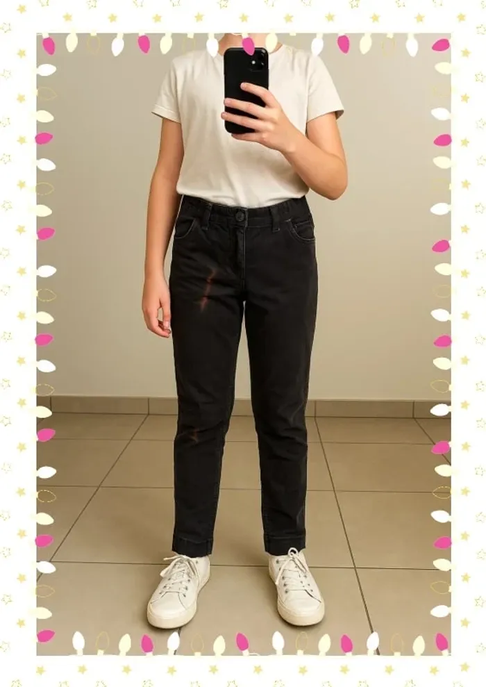 #lesliemp_fille #lesliemp_9ans Pantalon slim chic et confortable de la marque Sergent Major, taille 9 ans, parfait pour une petite fille pleine de style ! Coupe ajustée, tissu doux et agréable, parfait pour l’école ou les sorties 👧💫 🧼 État : bon, présente quelques taches décolorées (voir photo) – idéal pour bricoler, jardiner, ou pour les activités créatives sans crainte ! 💡 Peut aussi être customisé ou recyclé pour un look DIY unique ! 🧵 Taille élastiquée à l’arrière pour un confort optimal. Fermeture à bouton et zip. 💸 Petit prix pour une seconde vie 🥰 N’hésitez pas à me contacter pour un lot ou un envoi groupé !