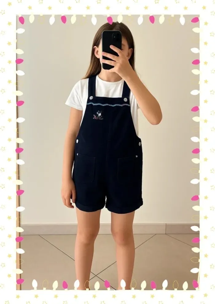 Charmante et pleine de caractère, cette salopette courte en velours côtelé bleu marine est un indispensable du dressing enfant. On adore ses bretelles à imprimé fleuri doublées pour plus de douceur, sa petite broderie délicate sur la poitrine et ses grandes poches pratiques pour y glisser ses trésors. 👧 Confort assuré avec sa coupe ample et son tissu doux 🌼 Détails craquants qui font toute la différence 🌿 Polyvalente — se porte avec un t-shirt l’été ou un pull léger à la mi-saison Parfaite pour les escapades, l’école ou les après-midi créatives, elle promet un look à la fois décontracté et adorable 💙 #lesliemp_fille #lesliemp_11 ans