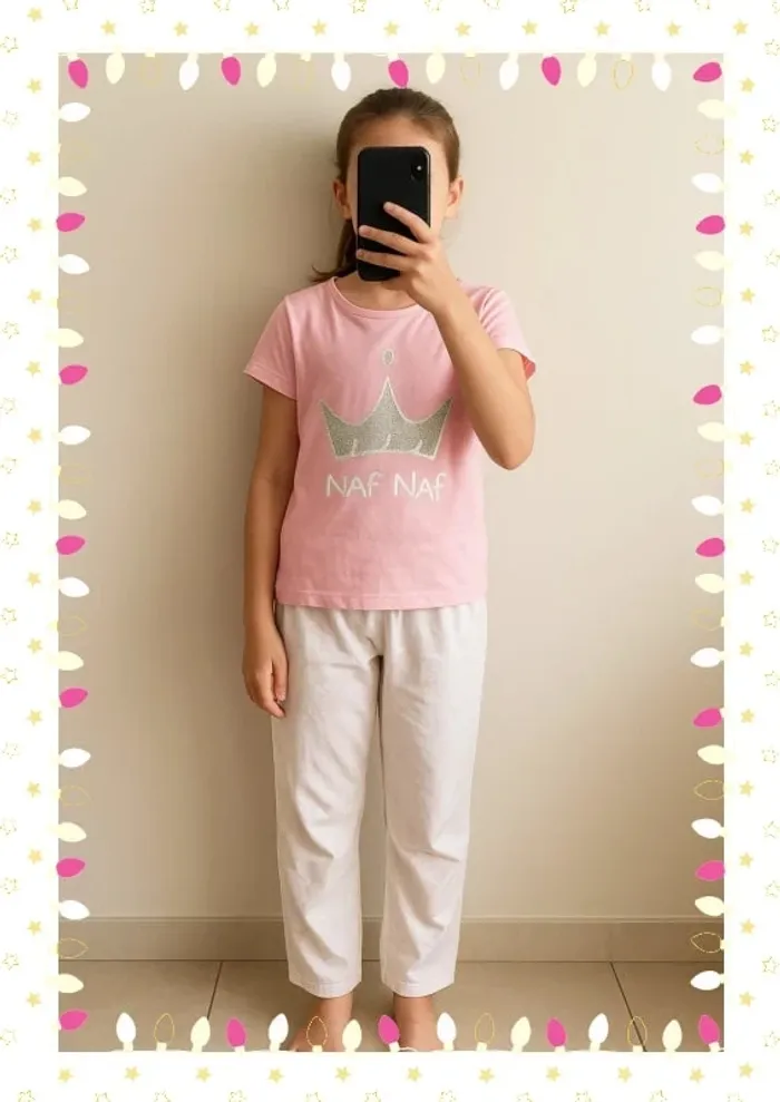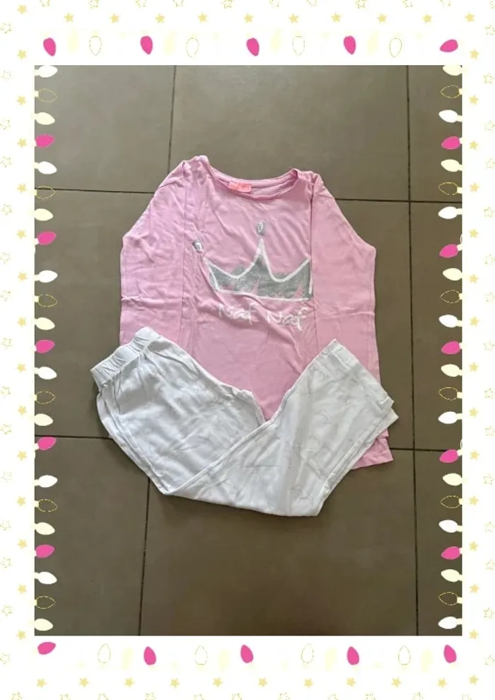 Coup de cœur pour ce pyjama 2 pièces tout doux, parfait pour des nuits confortables et stylées. Haut rose avec couronne argentée “Naf Naf” qui fait briller le coucher Pantalon blanc à imprimé discret, taille élastiquée pour un confort total Tissu agréable, léger et respirant État très bon, prêt pour de nouvelles histoires du soir Idéal pour l’école du sommeil, les soirées pyjama et les grasses matinées 😴✨ 📦 Envoi rapide et soigné. Regroupement possible avec vos autres achats. #NafNaf #PyjamaFille #Taille10Ans #VintedKids #Pyjama2Pieces #NuitEnfant #ModeEnfant #TenueCocooning #HautRose #PantalonBlanc #lesliemp_fille #lesliemp_10ans