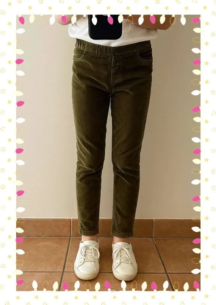 ✨ Élégant et confortable, ce pantalon slim vert en velours Cyrillus est idéal pour la mi-saison et l’hiver. Sa coupe ajustée met en valeur la silhouette tout en laissant une liberté de mouvement grâce à sa matière douce et légèrement stretch. Taille élastiquée au dos pour un ajustement parfait et pratique à enfiler.