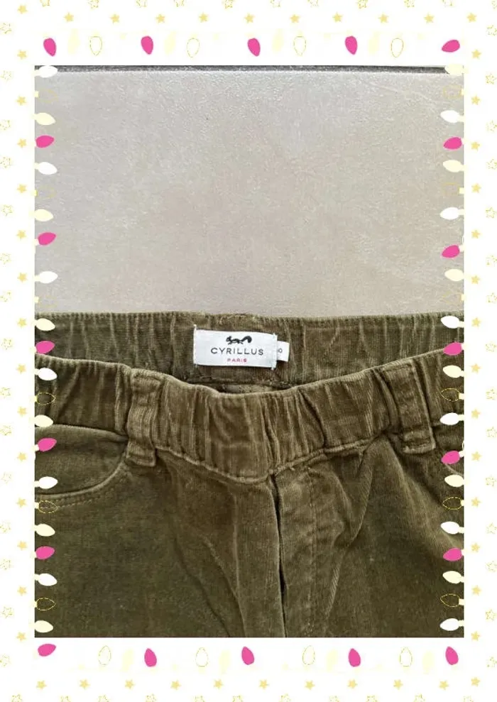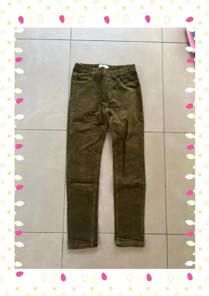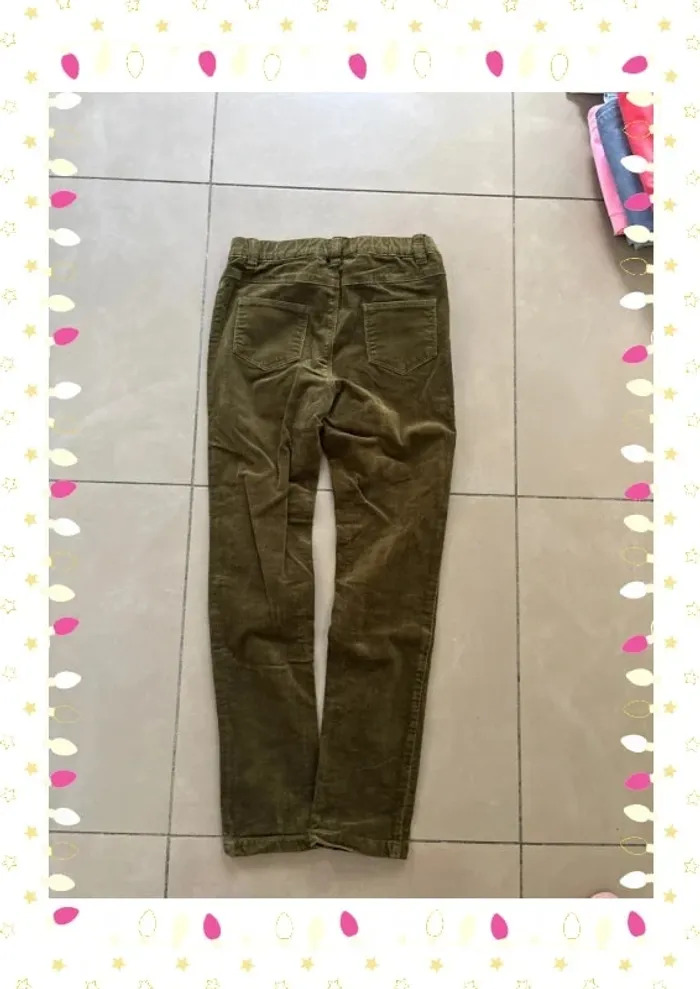 Pantalon vert slim Cyrillus velour – Enfant fille – Taille 10 ans