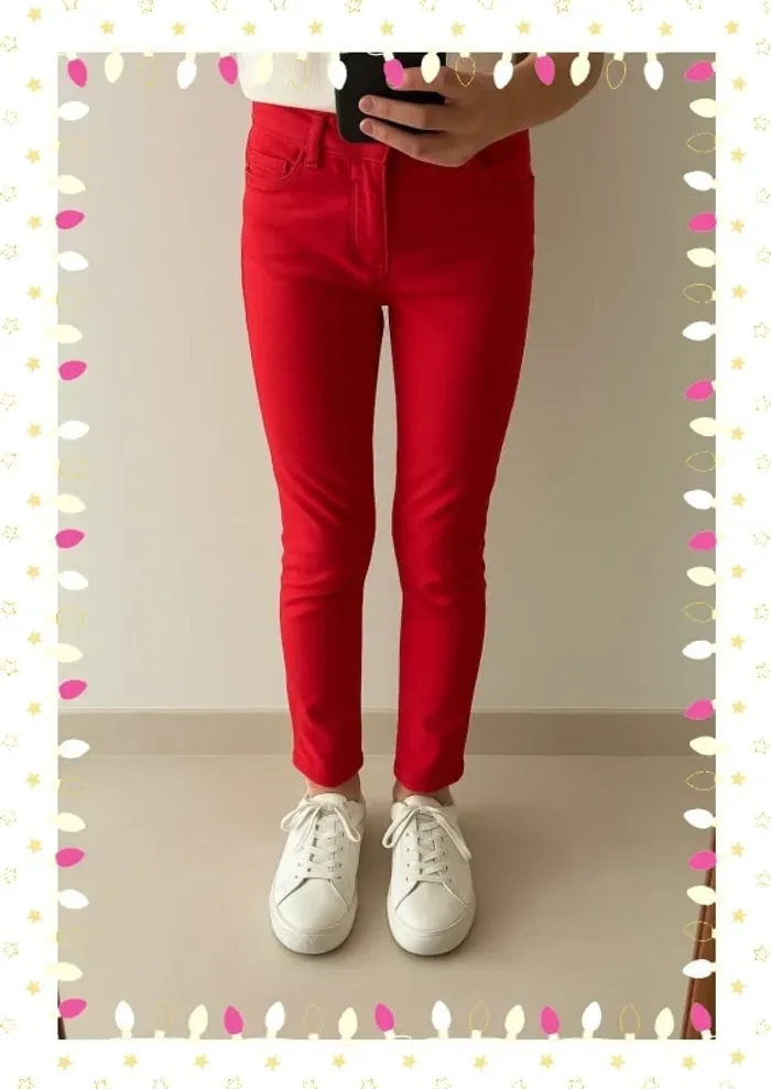 Un pantalon qui respire la vitalité et le style ❤️ ! Ce jean slim Cyrillus, d’un rouge éclatant, met instantanément de bonne humeur. Sa coupe ajustée met en valeur la silhouette tout en offrant un confort parfait pour le quotidien. Idéal pour apporter une touche de pep’s à n’importe quelle tenue. 💡 Idées d’utilisation : Assorti à un pull écru et des baskets blanches pour un look casual chic. Avec une blouse à motifs pour un style frais et joyeux. Parfait aussi pour les fêtes avec un haut noir ou doré ✨. 📏 Taille : 10 ans 💯 État : Très bon état, prêt à porter. #CyrillusKids #ModeEnfant #LookColoré #VenteVinted #StyleFille #lesliemp_fille #leslie_10ans