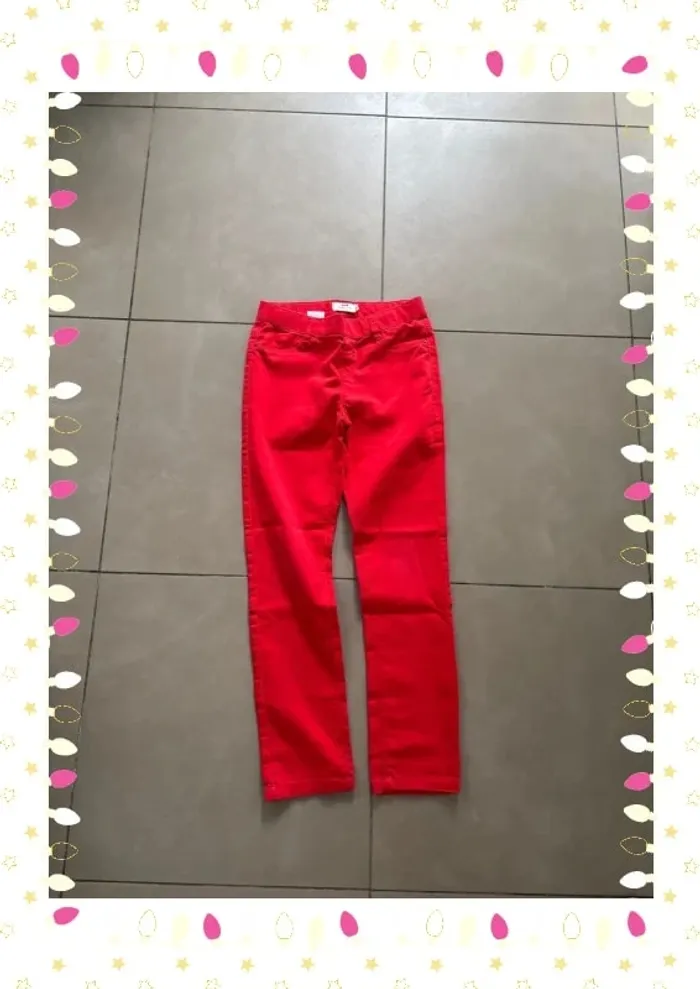 Jean slim rouge Cyrillus enfant fille taille 10 ans - photo numéro 1