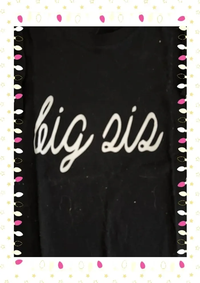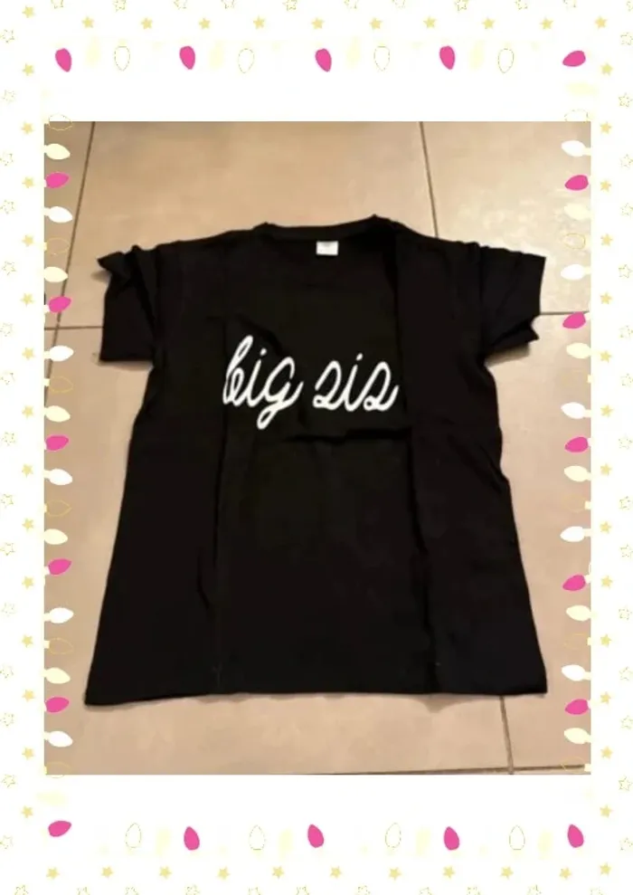 #lesliemp_fille #lesliemp_5ans T-shirt noir enfant fille, taille 5 ans, à manches courtes avec l’inscription blanche « big sis » en style manuscrit. 💕 Idéal pour afficher fièrement son rôle de grande sœur avec style ! Matière douce et agréable à porter, parfait pour la mi-saison ou l’été. En très bon état ✅ 📏 Taille : 5 ans 🎯 Parfait pour le quotidien ou pour un cadeau original 📦 Envoi rapide et soigné Prête à rejoindre la garde-robe d’une future ou déjà grande sœur ! 🌟