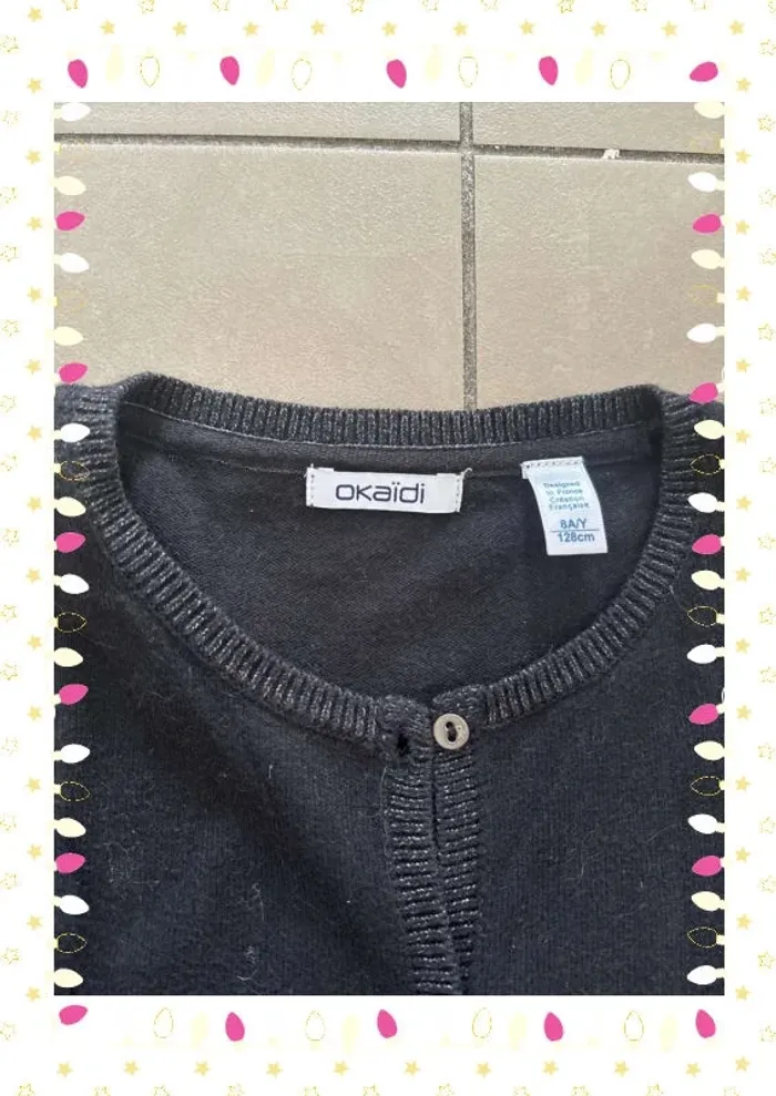 #lesliemp_fille #lesliemp_8ans Un indispensable du dressing ! Ce gilet noir à boutons de la marque OKAIDI est parfait pour toutes les saisons. Léger mais couvrant, il se porte aussi bien sur une robe qu’avec un jean. Taille 8 ans. Coupe classique, très confortable. Bon état général. 💡 Astuce look : idéal pour les tenues de rentrée ou les soirées fraîches d’été ! 🌱 Maison non fumeur, sans animaux. 📦 Envoi rapide et soigné.