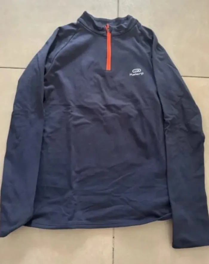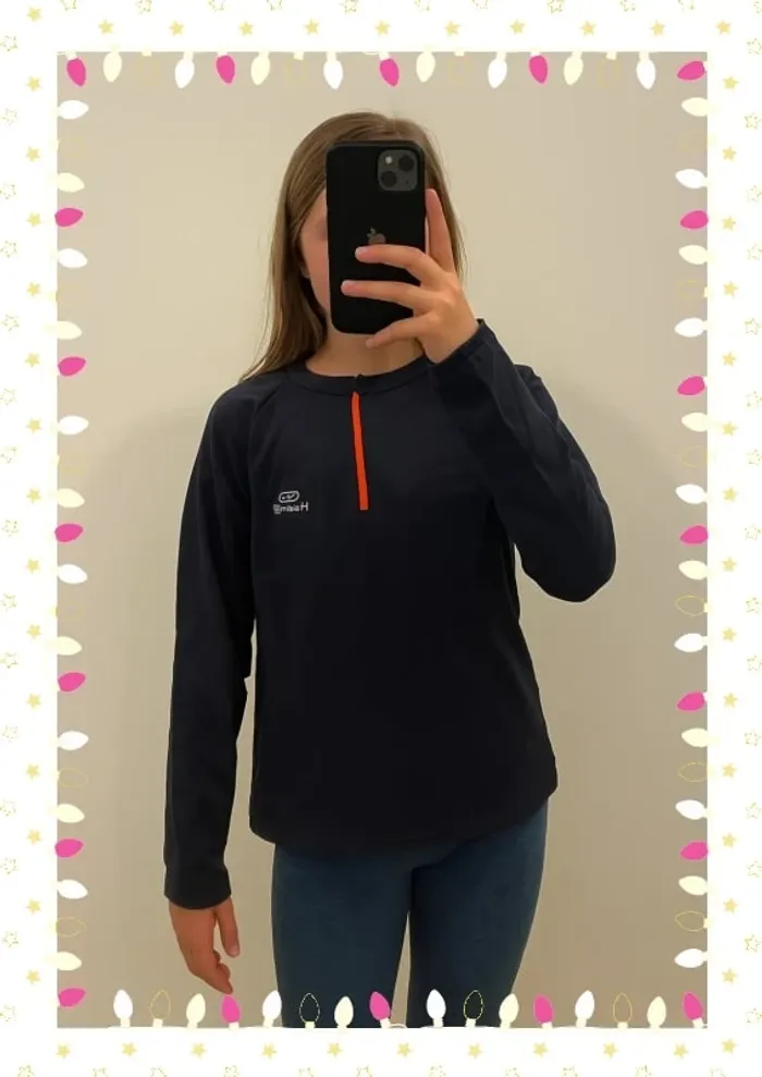 #lesliemp_fille #lesliemp_10ans Prête pour courir, sauter et s’amuser ! Ce T-shirt technique manches longues bleu marine signé Kalenji est idéal pour les activités sportives en extérieur comme en salle. Léger et respirant, il garde au chaud sans faire transpirer. Fermeture éclair orange au col pour une touche de style et un enfilage facile. ✅ Très bon état ✅ Confortable et pratique ✅ Lavé avec soin, non repassé 🏃‍♀️ Parfait pour le sport à l’école ou les entraînements