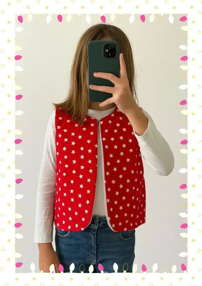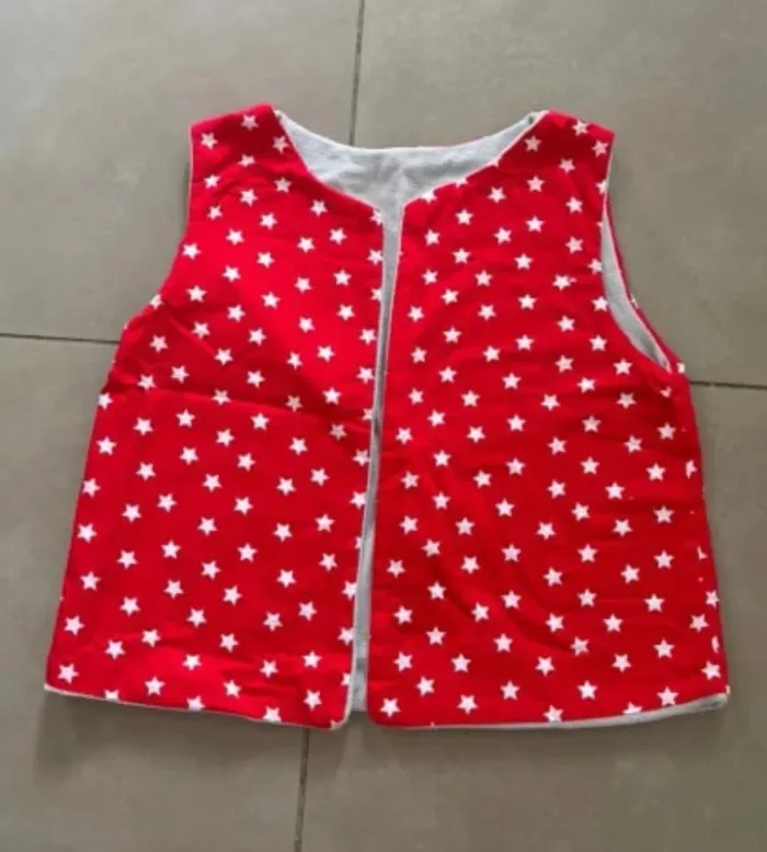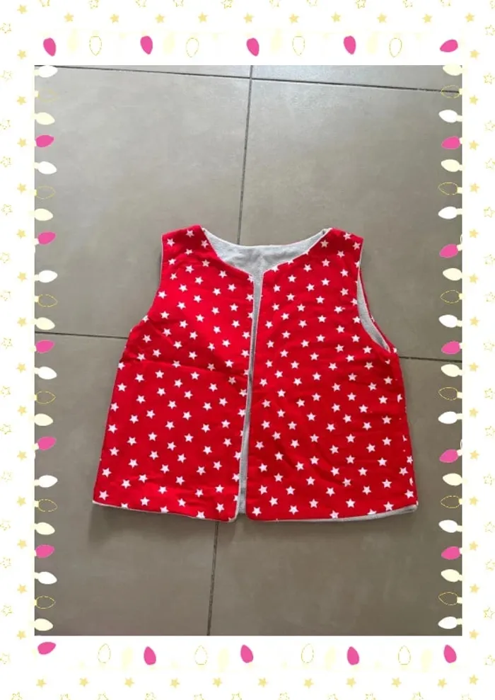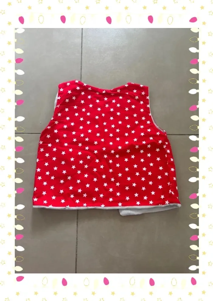 #lesliemp_fille #lesliemp_8ans Un vent de bonne humeur souffle avec ce joli gilet sans manches fait main ! Son tissu rouge étoilé est à croquer 🌈✨, parfait pour égayer les journées fraîches. Doublure toute douce à l’intérieur pour un max de confort 💫. Idéal en superposition sur un pull ou une robe. 🎯 Taille 8 ans 💌 En très bon état, fait avec amour ❤️ 👉 Pièce unique, ne la laissez pas filer !