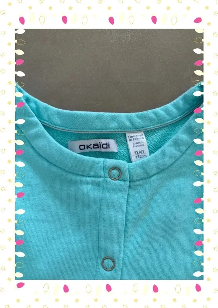 #lesliemp_fille #lesliemp_12ans Ajoute une touche de pep’s à la garde-robe de ta fille avec ce joli gilet Okaïdi couleur turquoise 🌊. Doux, léger et confortable, il est parfait pour les journées fraîches ou les soirées d'été. Sa coupe légèrement évasée en bas apporte une petite touche féminine trop craquante 💙. 🔘 Fermeture par pressions 🎯 Taille 12 ans 📍 En très bon état, porté peu de fois 🌱 Maison non fumeur, sans animaux 💌 Envoi rapide et soigné !